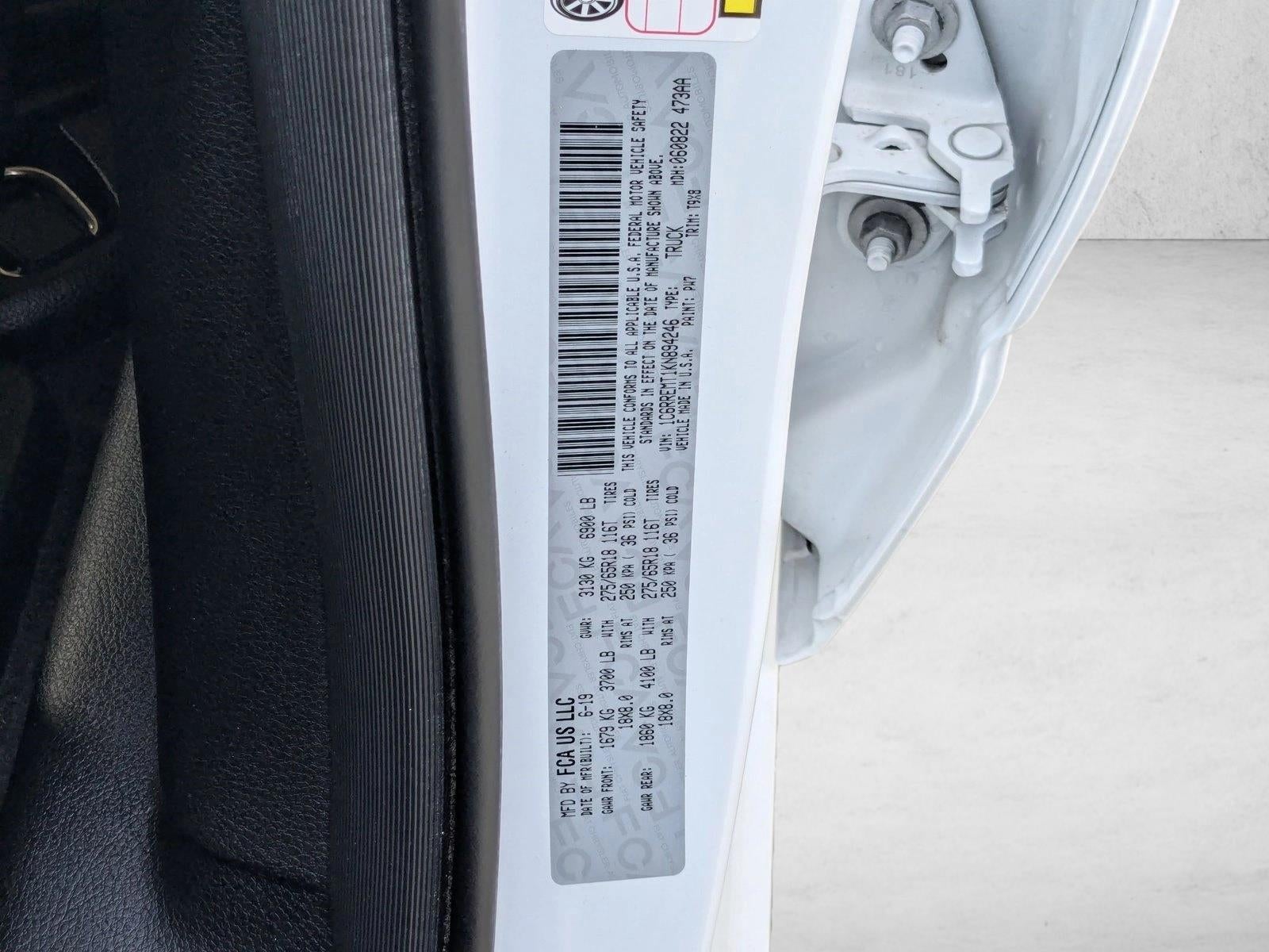 AutoNation Chrysler Dodge Jeep Ram ValenciaCall 661-219-0600Thank you for your interest in this 2019 Ram 1500 at AutoNation Chrysler Dodge Jeep Ram Valencia. This pre-owned vehicle is one of thousands in our massive used car inventory at AutoNation. This Ram includes: BRIGHT WHITE CLEARCOAT ENGINE: 5.7L V8 HEMI MDS VVT Gas/Electric Hybrid 8 Cylinder Engine QUICK ORDER PACKAGE 25Z BIG HORN/LONE STAR Steering Wheel Audio Controls DIESEL GRAY/BLACK, DELUXE CLOTH BUCKET SEATS Cloth Seats Power Driver Seat Driver Adjustable Lumbar Bucket Seats *Note - For third party subscriptions or services, please contact the dealer for more information.* In addition to being well-cared for, this Ram 1500 has very low mileage making it a rare find. The quintessential Ram -- This Ram 1500 Big Horn/Lone Star speaks volumes about its owner, about uncompromising individuality, a passion for driving and standards far above the ordinary. You can finally stop searching... You've found the one you've been looking for. AutoNation Chrysler Dodge Jeep Ram ValenciaCall 661-219-060023820 Creekside Dr. Valencia Ca 91355