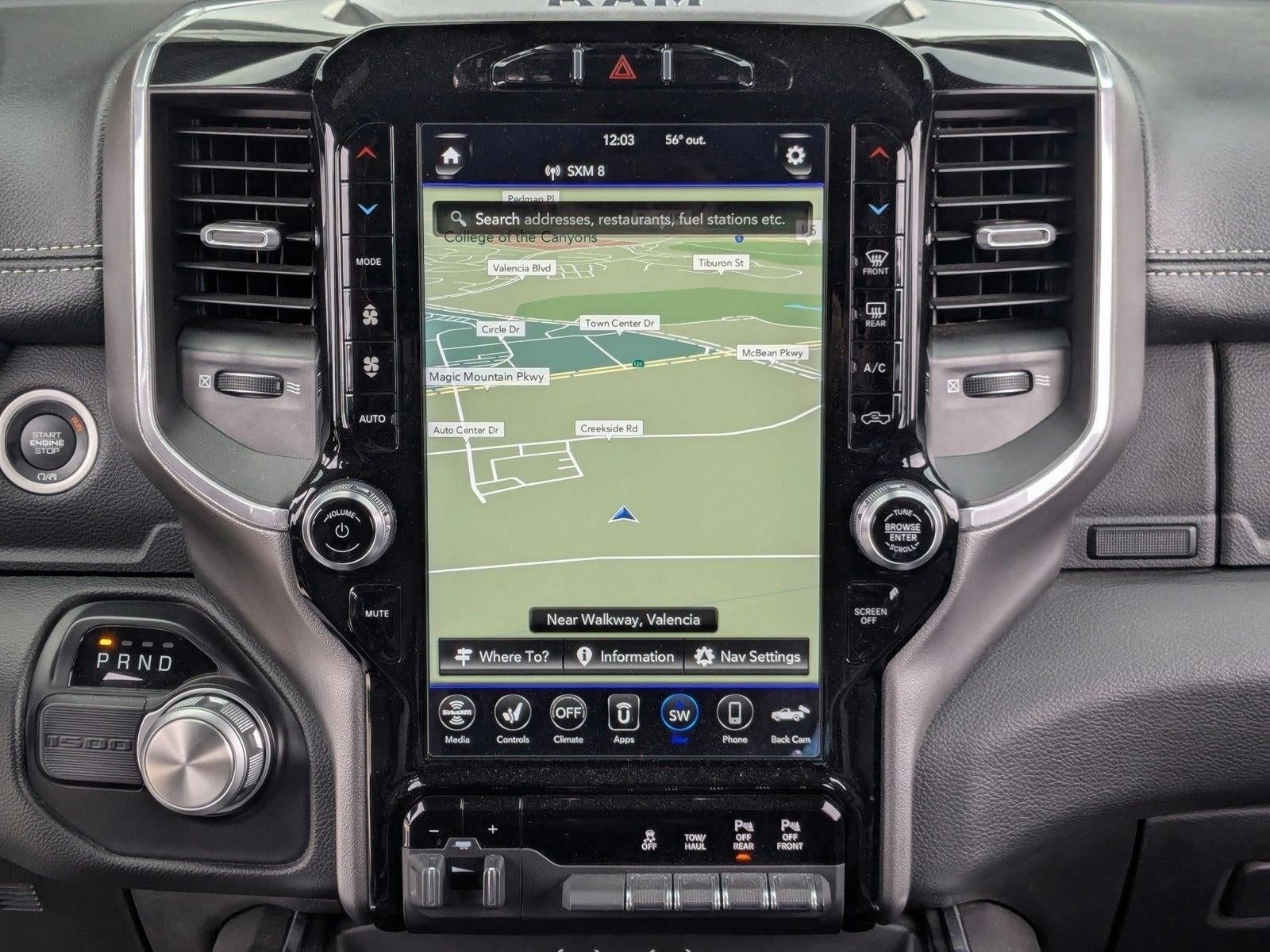 AutoNation Chrysler Dodge Jeep Ram Valencia Call 661-219-0600 Thank you for your interest in this 2020 Ram 1500 at AutoNation Chrysler Dodge Jeep Ram Valencia. This pre-owned vehicle is one of thousands in our massive used car inventory at AutoNation. This Ram includes: ANTI-SPIN DIFFERENTIAL REAR AXLE Locking/Limited Slip Differential SPORT APPEARANCE PACKAGE Integrated Turn Signal Mirrors Tires - Front Performance Aluminum Wheels Power Mirror(s) Heated Mirrors Tires - Rear Performance Power Folding Mirrors LARAMIE LEVEL 1 EQUIPMENT GROUP Variable Speed Intermittent Wipers Intermittent Wipers Rear Parking Aid Blind Spot Monitor Cross-Traffic Alert Remote Trunk Release Pass-Through Rear Seat Rain Sensing Wipers TRAILER BRAKE CONTROL QUICK ORDER PACKAGE 24H LARAMIE MAXIMUM STEEL METALLIC CLEARCOAT BLACK, LEATHER TRIMMED BUCKET SEATS Leather Seats Bucket Seats RADIO: UCONNECT 12 W/NAVIGATION Remote Engine Start HD Radio Navigation System AM/FM Stereo Satellite Radio Bluetooth® Connection Telematics Requires Subscription *Note - For third party subscriptions or services, please contact the dealer for more information.* Indulge yourself with one of the most highly crafted, most luxurious automobiles available today. This 2020 Ram 1500 has such low mileage it has been parked more than driven. Marked by excellent quality and features with unmistakable refined leather interior that added value and class to the Ram 1500 Laramie. If, upon choosing the road less traveled you find yourself lost, relax and remember this beautiful car has navigation. AutoNation Chrysler Dodge Jeep Ram Valencia Call 661-219-0600 23820 Creekside Dr. Valencia Ca 91355